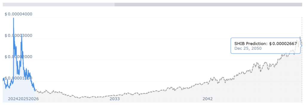 “Shiba Inu would need to gain 18,003,825.52% to reach $1. According to our Shiba Inu prediction algorithm, the price of Shiba Inu will not reach $1. The highest expected price our algorithm estimates is $ 0.00003077 by 2050.”