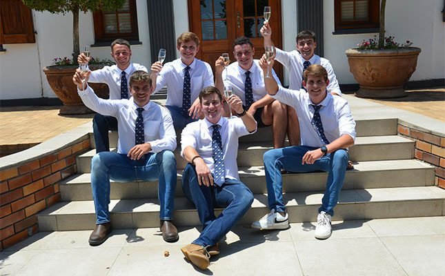 The top seven students at Hoër Landbouskool Oakdale celebrated their matric results on Tuesday. Pictured from back left to right are Christoff Thiart (6 distinctions), Daniël du Preez (4 distinctions), Jannes Snyman (5 distinctions), and Handré Gerber (3 distinctions). In the front row from left to right is Lohan Gerber (six distinctions), Luan Serfontein (five distinctions) and Artho Saayman (eight distinctions).