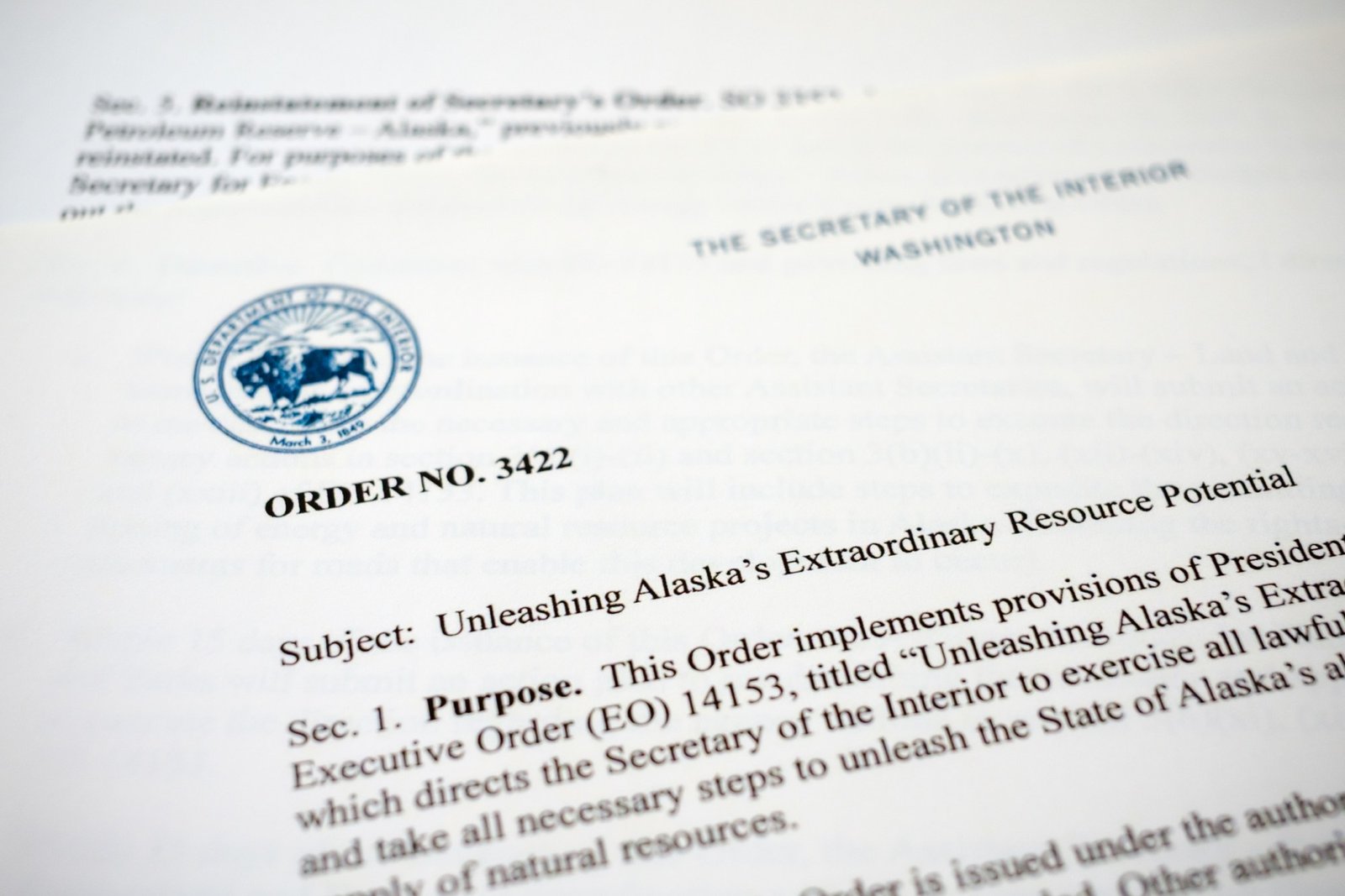 Order No. 3422 from the Secretary of the Interior lays out the department’s intention to “Unleash Alaska’s Extraordinary Resource Potential.” Credit: Roberto (Bear) Guerra / High Country News