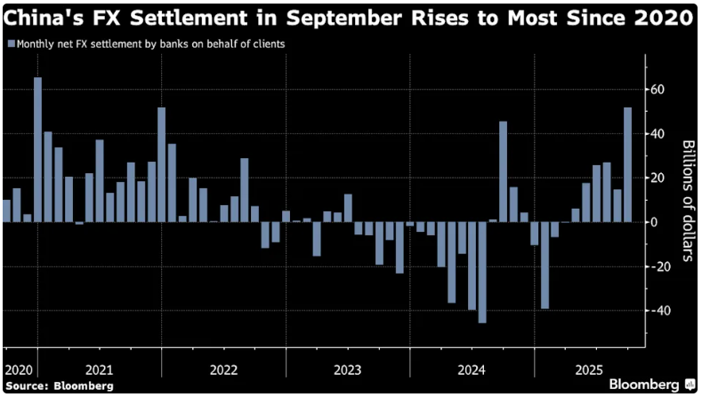 Chinese banks have helped clients offload overseas currencies worth $51.8 billion, the highest since 2020. BRICS member China is at the forefront of the US dollar sell-off, as optimism grows towards the Chinese yuan, reported Bloomberg. The lenders have sold a net $51.8 billion of foreign exchange on behalf of their customers in September. That’s the largest amount ever recorded since December 2020. The clients include importers, exporters, and other investors in overseas financial assets.
