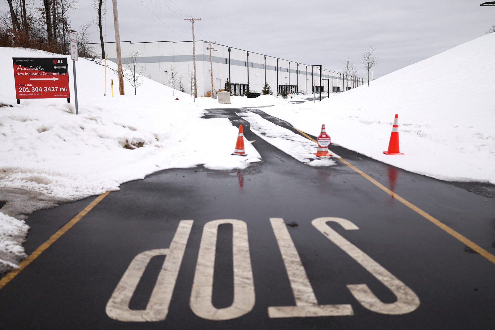 View of a warehouse US Immigration and Customs Enforcement (ICE) plan to become a detention center for detained undocumented immigrants in Roxbury, New Jersey, on February 16, 2026. Activists say the Department of Homeland Security is considering converting this industrial warehouse into a US Immigration and Customs Enforcement (ICE) detention center which faces the opposition of the local community. (Photo by CHARLY TRIBALLEAU / AFP via Getty Images)