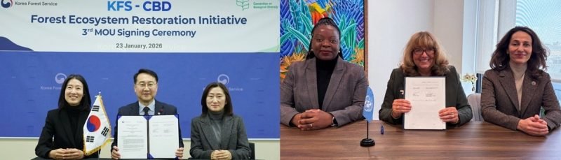 The Korea Forest Service (KFS) and the Secretariat of the Convention on Biological Diversity (CBD) on Friday, January 23, 2026, signed a Memorandum of Understanding (MoU) on the implementation of the third phase of the Forest Ecosystem Restoration Initiative (FERI).