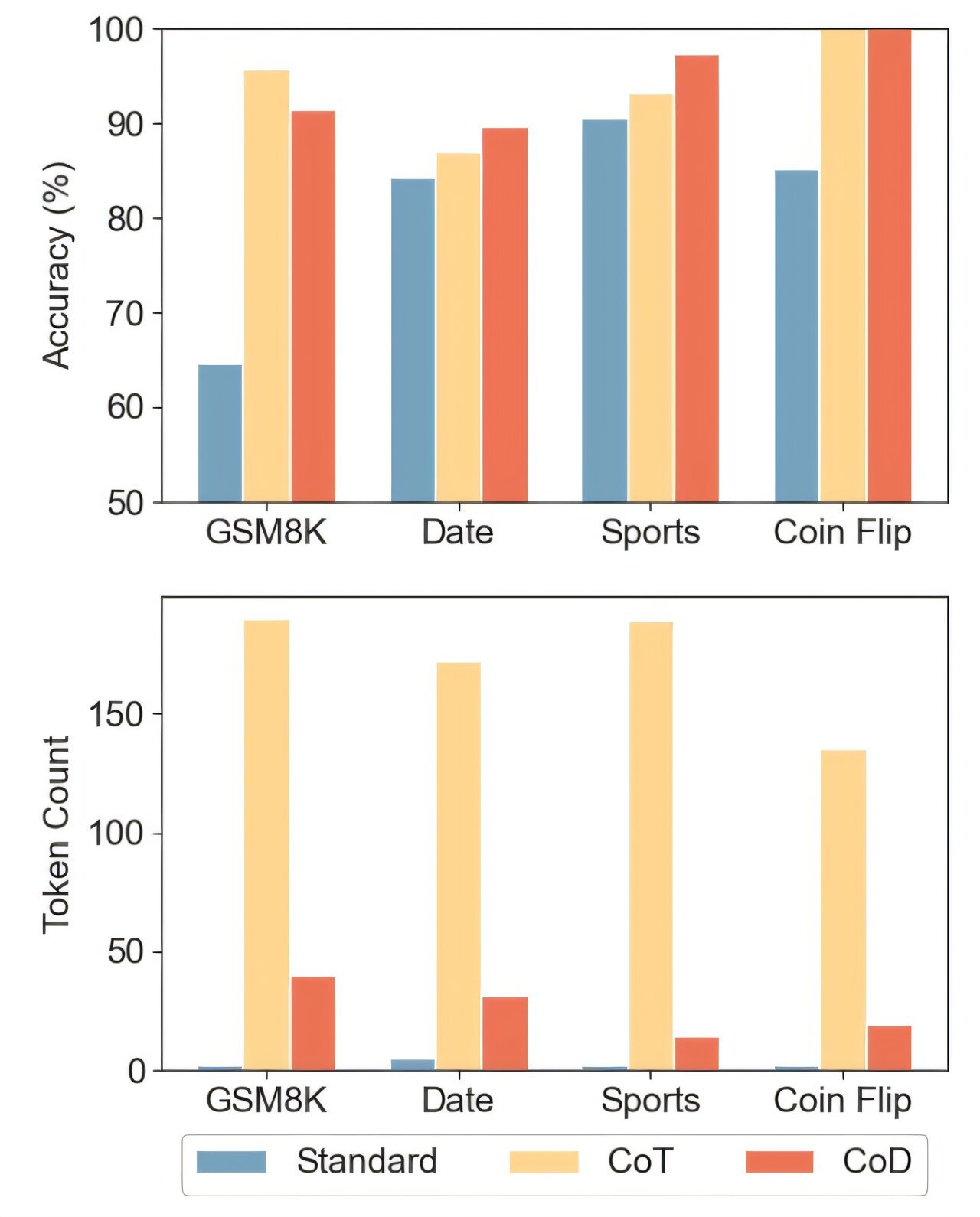 Comparison of Claude 3.5 Sonnet’s accuracy and token usage across different tasks with three different prompt strategies: direct answer (Standard), Chain of Thought (CoT), and Chain of Draft (CoD). Credit: arXiv (2025). DOI: 10.48550/arxiv.2502.18600