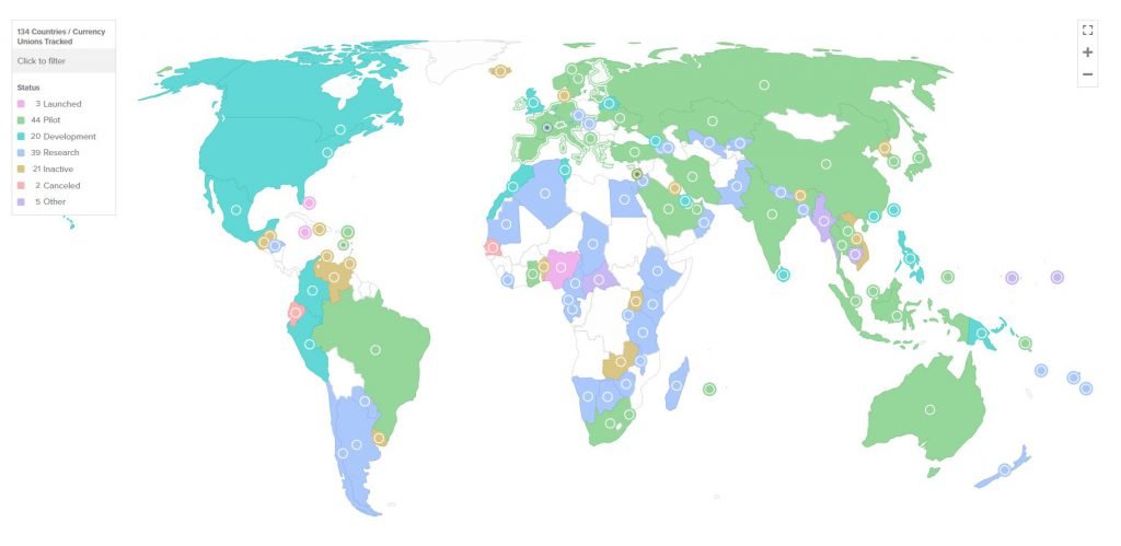 World map showing CBDC developmentWorld map showing CBDC development