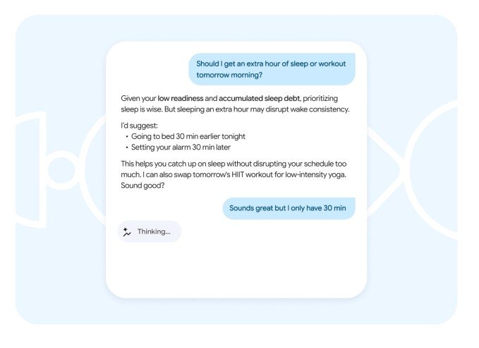 Google notes that users can ask the AI coach to get personalized, science-backed answers. For example, they can ask things like, “Should I get an extra hour of sleep or work out tomorrow?” or “What are the best exercises for weight loss?”