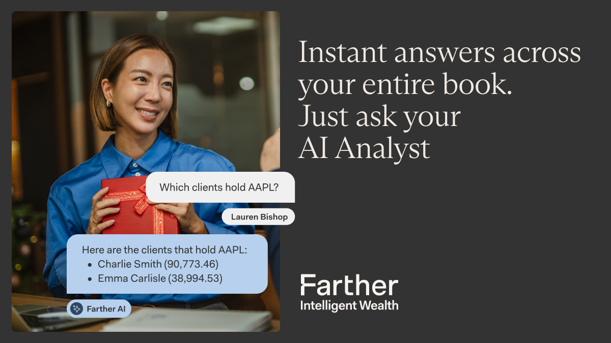 The $13 billion RIA’s new AI Analyst scans client data to flag tax risks, cash imbalances, market exposure and life events, giving advisors a head start on client outreach. Farther’s investors include CapitalG, a fund from Google’s parent company Alphabet.