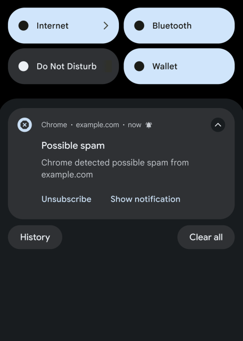 As for the new AI-powered warnings, Google notes that the risk from scammy sites can extend beyond the site itself through notifications if you have them enabled. Malicious websites can use notifications to try to scam you, which is why Chrome will now help you be aware of malicious, spammy, or misleading notifications on Android.