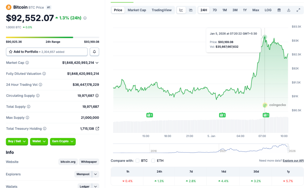 Bitcoin (BTC) has reclaimed the $92,000 price level, seeing a substantial turnaround over the weekend. The original crypto briefly hit $93,000, but is facing substantial resistance at that mark. According to CoinGecko data, BTC’s price has rallied 1.3% in the daily charts, 2.8% in the weekly charts, 4.4% in the 14-day charts, and 3.2% over the previous month. However, BTC is still down by 5.7% since January 2025. Let’s discuss how long it will take Bitcoin (BTC) to reclaim the $100k price level.