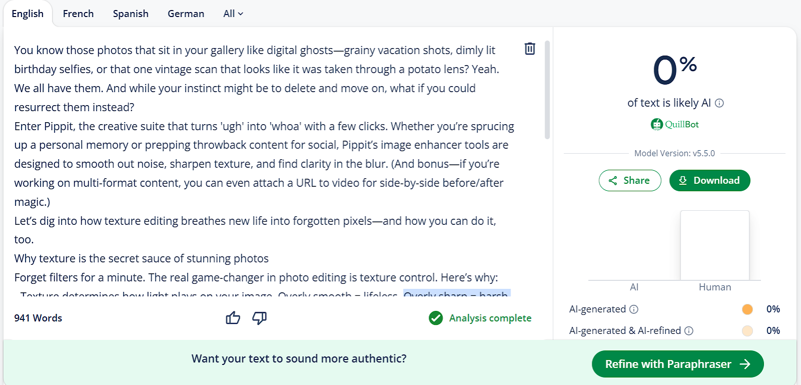 Enter Pippit, the creative suite that turns ‘ugh’ into ‘whoa’ with a few clicks. Whether you’re sprucing up a personal memory or prepping throwback content for social, Pippit’s image enhancer tools are designed to smooth out noise, sharpen texture, and find clarity in the blur. (And bonus—if you’re working on multi-format content, you can even attach a URL to video for side-by-side before/after magic.)