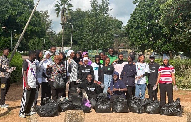 Young Nigerians: A cross section of youths during the cleanup at Plogging Nigeria, University of Nigeria, Nsukka