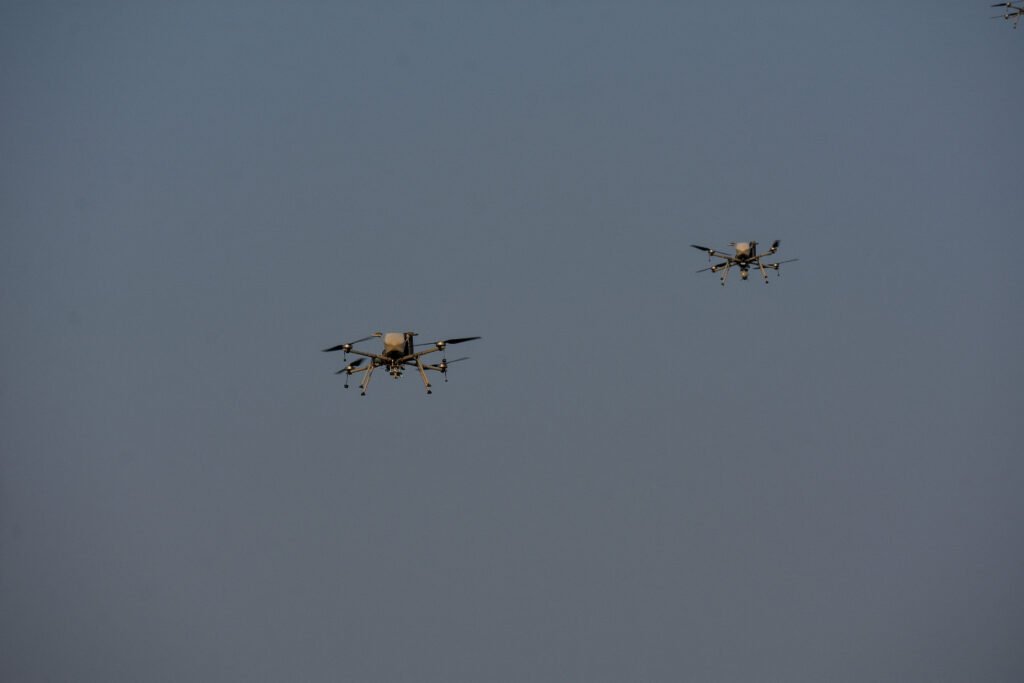 Civil defense teams recreated a sudden drone strike on a crowded market, triggering a brief blackout and evacuation. State Disaster Response Force teams responded with cranes and emergency gear to simulate the rescue of trapped civilians.