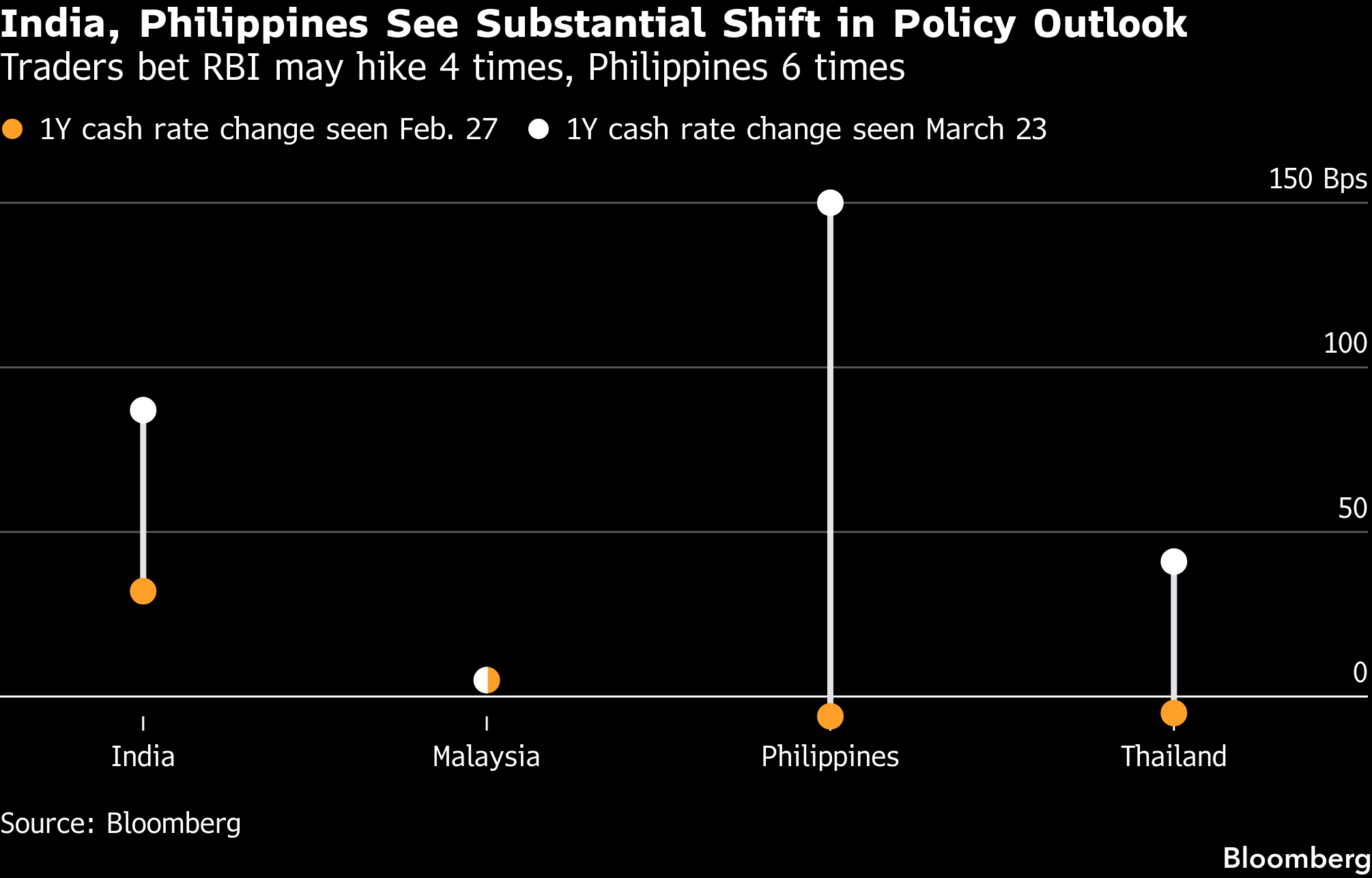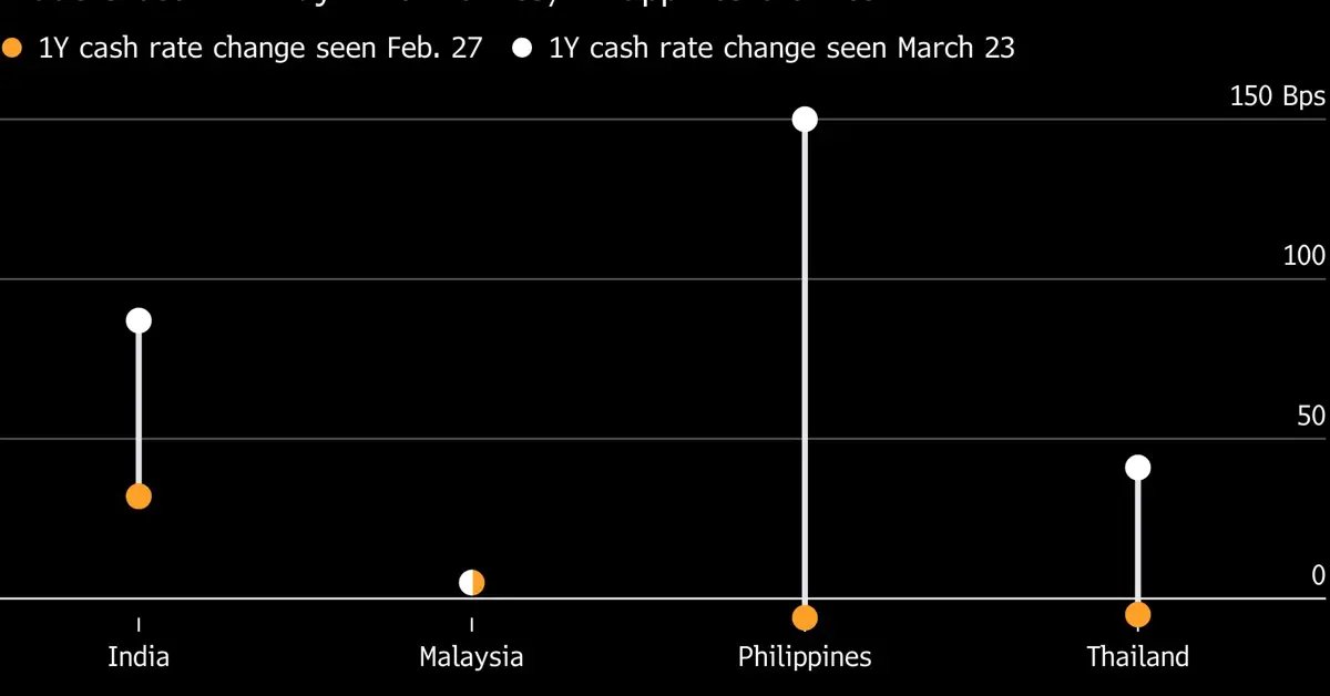 Central banks elsewhere are also grappling with a rapid shift in their policy outlook. Across Asia, the turnaround in swap pricing is most pronounced in India and the Philippines. In developed economies, the Bank of England and the European Central Bank have both signaled that further tightening may be warranted. Global bond yields have risen, with US yields at their highest in months.