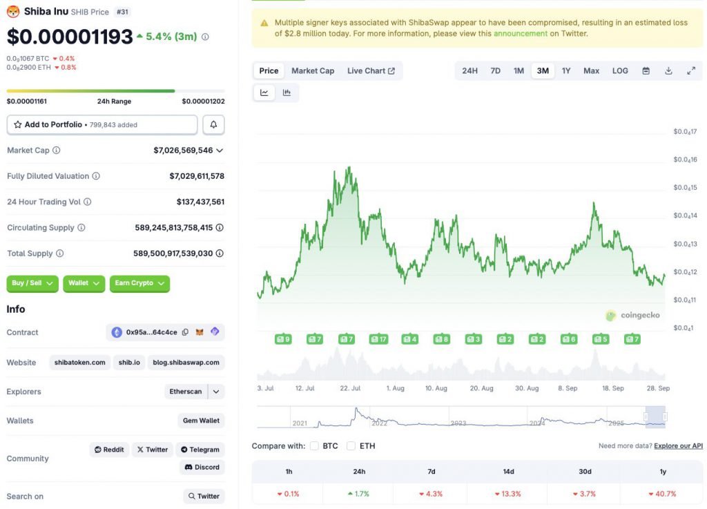 The cryptocurrency market seems to be making a slight recovery after its recent plummet. Bitcoin (BTC) has reclaimed the $111,000 price level, and the global crypto market cap has risen 2.3% in the last 24 hours to $3.95 trillion. Shiba Inu (SHIB) has made a slight recovery of 1.7% in the last 24 hours, but continues to glow red in the other time frames. According to CoinGecko data, Shiba Inu has faced a price dip of 4.3% in the weekly charts, 13.3% in the 14-day charts, 3.7% in the monthly charts, and 40.7% since September 2024. Let’s discuss if SHIB can make a comeback in October.