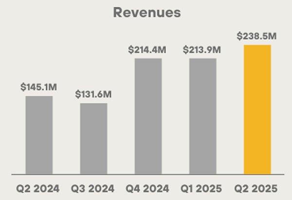 The firm’s revenue beat analyst expectations of $223.7 million while its net income surged 505% compared to a year ago to $808 million, up from a loss of just under $200 million in Q2 2024.