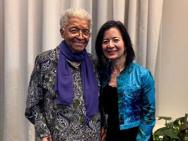 Nobel Laureate and former Liberian President Ellen Johnson Sirleaf & Reeta Roy, President & CEO at the Mastercard Foundation