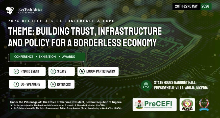 LAGOS, Nigeria, 11 December 2025-/African Media Agency (AMA)/-Under the distinguished patronage of the Office of the Vice President, Federal Republic of Nigeria, and in partnership with the Presidential Committee on Economic & Financial Inclusion (PreCEFI), with the collaboration of the Inter-Governmental Action Group against Money Laundering in West Africa (GIABA), the 2026 RegTech Africa Conference & Expo will convene global leaders in policy, finance, and technology from 20th to 22nd May 2026 at the State House Banquet Hall, Abuja, Nigeria.