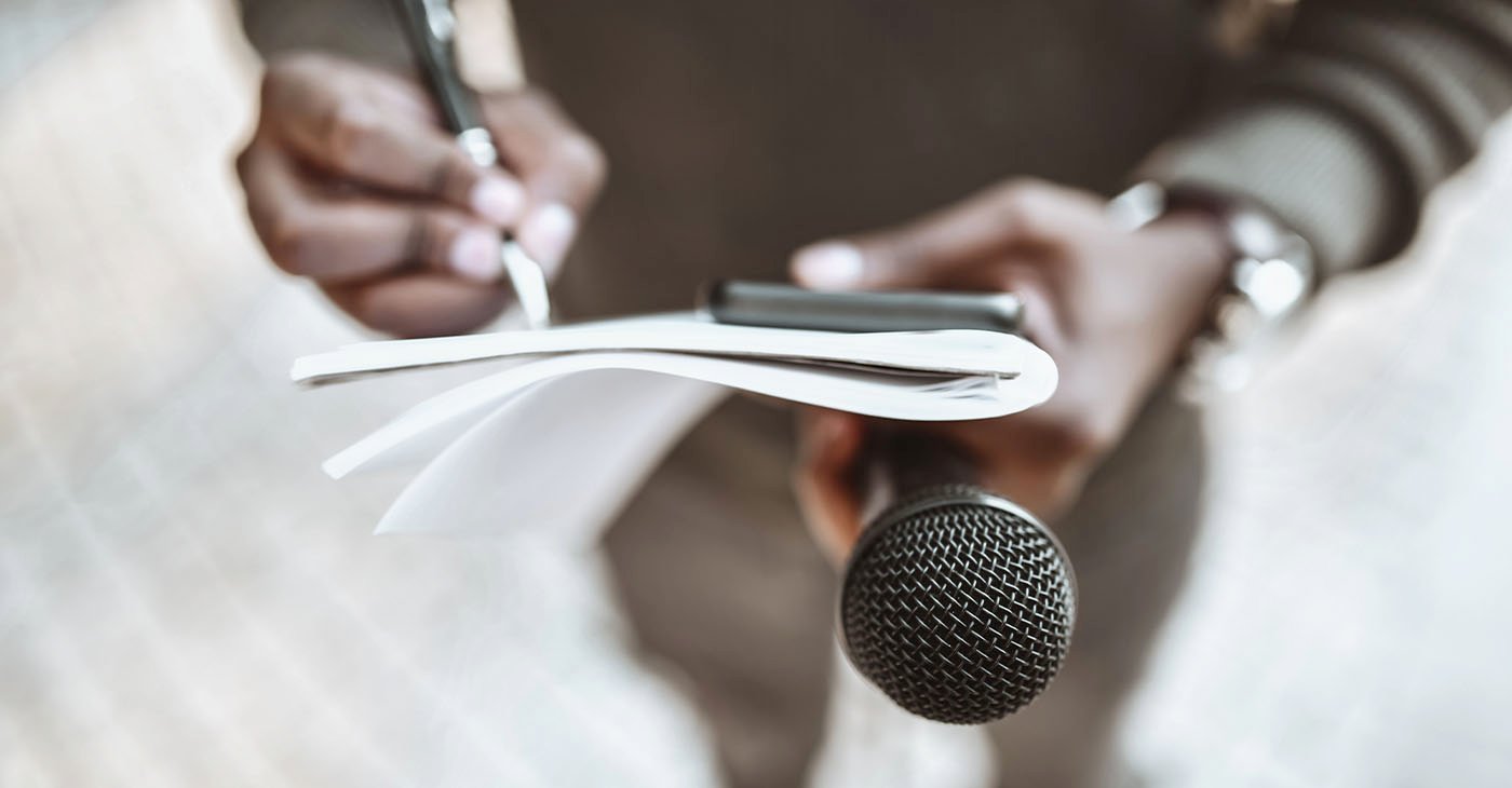 Male Journalist Preparing Questions For Press Conference (Photo by Aleksandar Georgie)