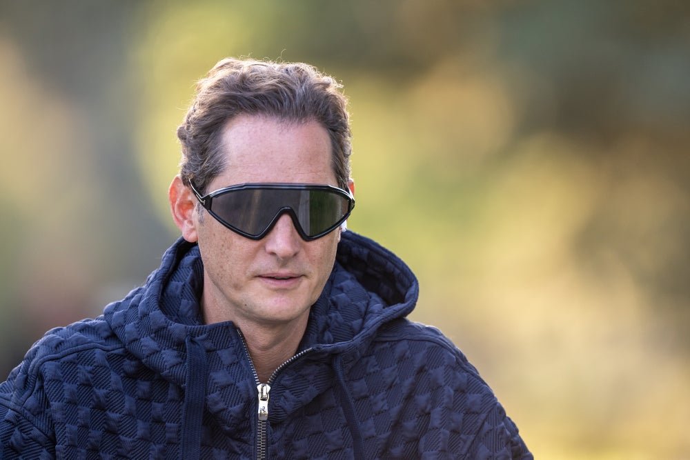 John Elkann, chief executive officer of Exor NV, rides a bicycle to the morning session during the Allen & Co. Media and Technology Conference in Sun Valley, Idaho, US, on Friday, July 11, 2025. (David Paul Morris/Bloomberg via Getty Images)