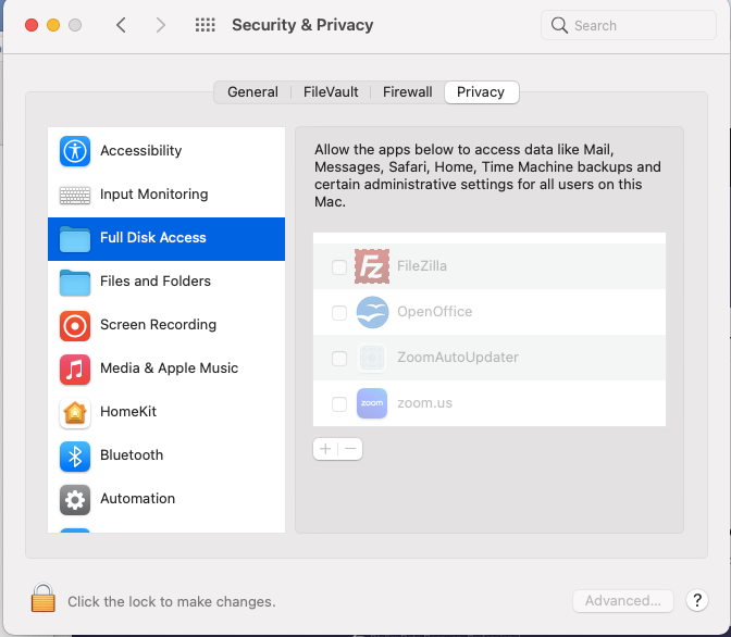 If you’re planning to recover files from your Mac’s internal drive, you’ll need to grant Stellar Data Recovery full access. This can be done by going to System Preferences > Security & Privacy > Full Disk Access. Click the padlock in the lower-left corner, enter your admin password, and enable access for StellarDataRecovery.