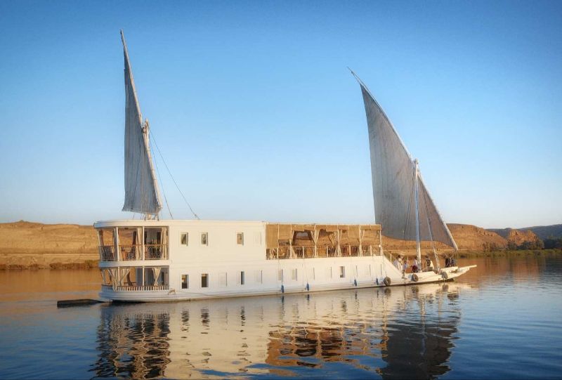 In 1928-29, Swiss-German expressionist Paul Klee’s travels through Egypt inspired works such as Monument at the Border of the Fertile Land, a dreamlike abstraction of the Nile’s irrigated farmlands. Goya Gallagher, founder of Anūt Cairo, drew inspiration from Klee’s painting for the design of Nanusa, a five-cabin dahabiya. This traditional Nile sailing boat features a large canopy made of hand-dyed linen in Klee’s shore-to-sand shades, stitched almost invisibly. The canopy sways gently in the breeze, reflecting both the artwork and the surrounding landscape, creating a serene, immersive connection between art, history, and nature.