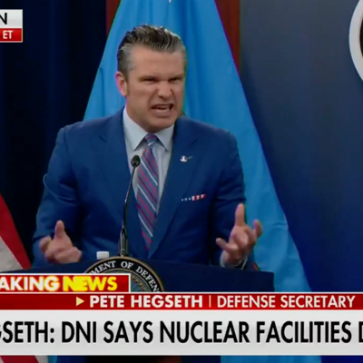 Hegseth began his remarks by raging against the press—naming CNN, MSNBC, the Washington Post and the New York Times—for reporting on a preliminary Defense Intelligence Agency review of the strikes on three key Iranian nuclear facilities. The report said the operation appears to have set back the country’s nuclear program only months, not “obliterated” it, as the Trump administration has claimed.