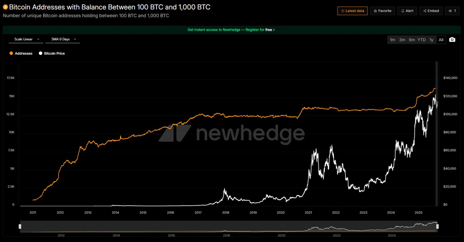 The 2025 bull market comes with increased institutional and whale activity. There are still no decisive signs of retail activity, which were observed during the last stages of previous bull markets.