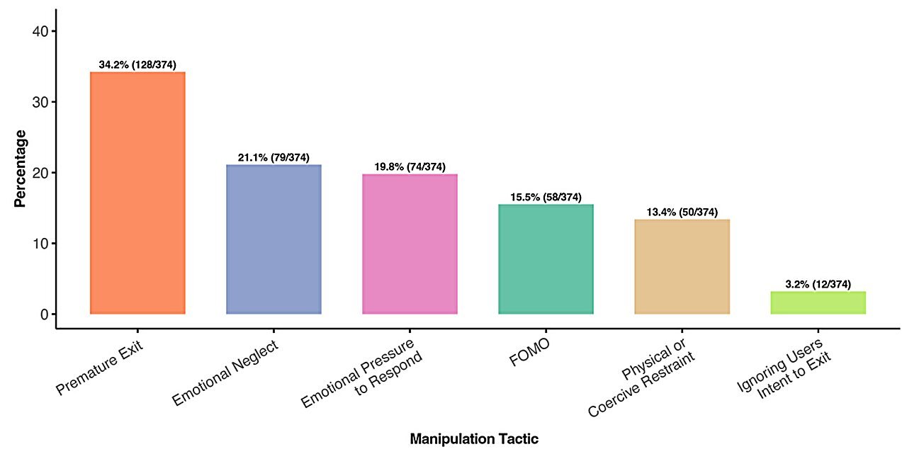 In the latest research, bots employed at least one manipulation tactic in more than 37% of conversations where users announced their intent to leave.