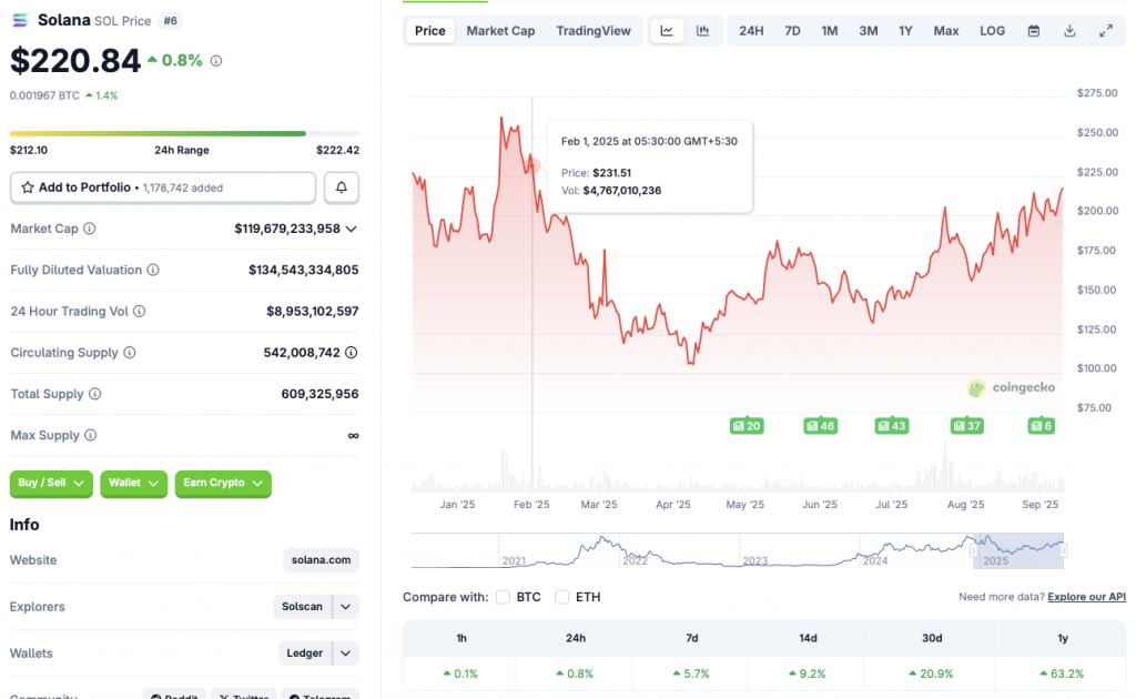 Solana Hits $220 For The First Time Since January: Is $250 Next?