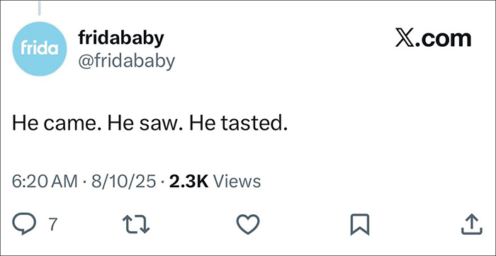 Fridababy is a Swedish-founded, American-based company specializing in baby products. Its motto, “From delivery to boogers, butts and beyond!” might sound gross to some, but it was effective at reaching young parents who deal with this stuff daily. However, the company has a tendency to go too far in its “edgy” marketing for reasons unknown.
