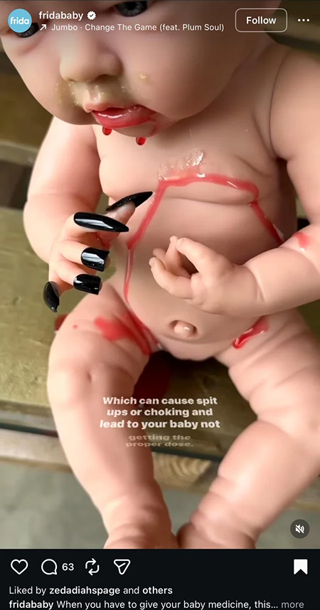 This social media post about giving infants medicine features a naked baby doll with .. long painted fingernails? Why? To fit their continuous baby sexualization vibes?