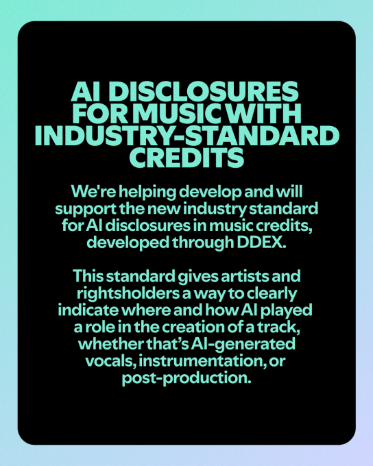 The company says it will adopt an upcoming industry standard for identifying and labeling AI music in credits, known as DDEX, and will soon roll out a new music spam filter to catch more bad actors.