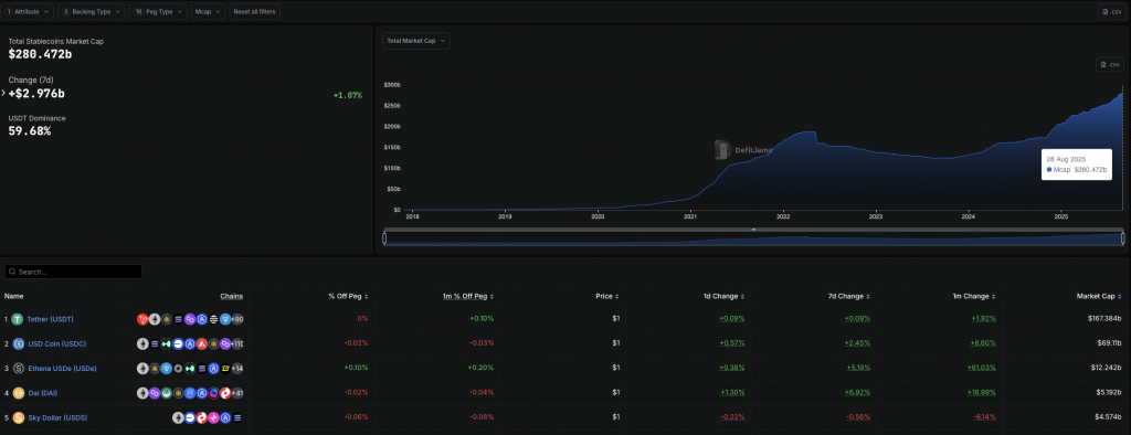 According to DefiLlama’s stablecoin statistics, the global stablecoin market cap has hit a new all-time high of $280.47 billion. According to DefiLlama, Tether (USDT) continues to dominate the market, with a market cap of $167.3 billion. USD Coin (USDC) takes the second spot, trailing behind with a market cap of $69.1 billion. Let’s discuss if Ripple’s RLUSD will shine under the growing interest in stablecoins.