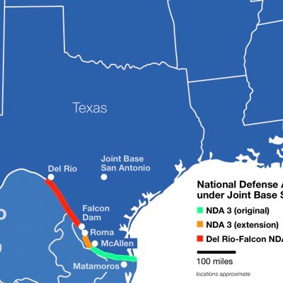 Last June, Pentagon leaders announced that they would take charge of land along the final 250 miles of the Rio Grande, which had been administered by State Department employees on the International Boundary and Water Commission. Designated National Defense Area 3, the land was placed under the control of Joint Base San Antonio, which is operated by the Air Force. As with similar zones established last year, the NDA designation effectively turned the land into a military base that can be patrolled by troops. As well, trespassers are subject to misdemeanor charges related to illegally entering Defense Department property.