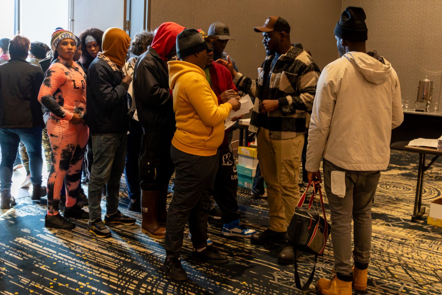 Still, at the DoubleTree on the day of the vote, as workers from the overnight C shift began to check in shortly after 6 a.m. to cast some of the first votes, a sense of apprehension was palpable. Rumors circulated that unmarked vans had been seen circling outside the hotel, raising fears of detention by Immigration and Customs Enforcement (ICE). Many workers reminded each other that, in recent weeks, proof of legal status had been little help to immigrants in Minneapolis. Nevertheless, workers lined up in the hallway, waiting to give their names and receive a blue slip of paper to record their vote and deposit it in an old-school wooden vote box.