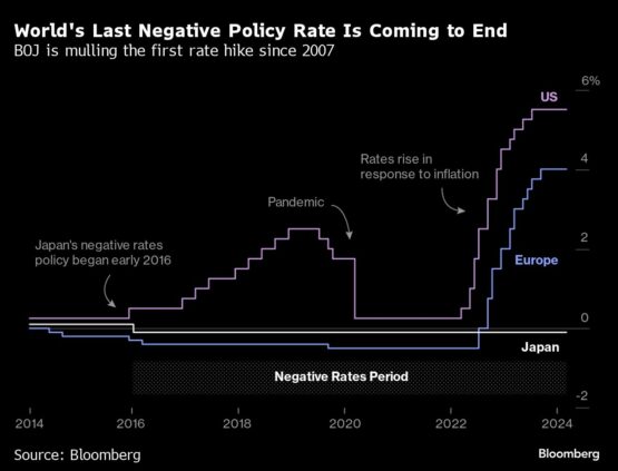 Bets are mounting that the Bank of Japan will end its negative-rate policy at its meeting Tuesday, while a policy decision and inflation data from the UK are due later in the week. The main focus comes Wednesday, when Fed policy makers gather for a meeting that has the potential to set the tone for global stocks for the next quarter.