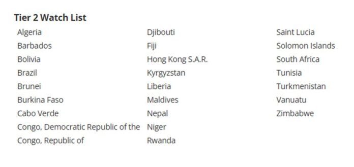 “Tier 2 Watch List,” meaning they must demonstrate greater efforts on the issue or face possible US sanctions.