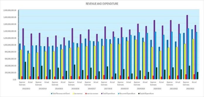 The accompanying graph shows the government of Saint Lucia’s revenue and expenditure for the decade 2012/2013 – 2022/2023, to illustrate the concern. I include the financial year 2020, notwithstanding COVID, because as a small open economy, we are always subjected to external shocks and must plan accordingly.