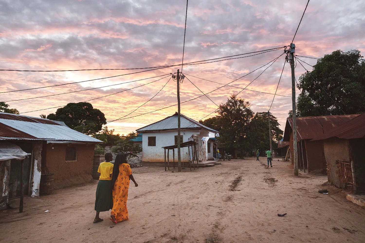 People walk under active and inactive power lines in Matipwili on Jan. 22.