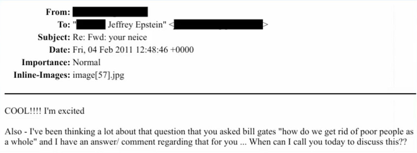 One email presents a correspondent asking Gates, in unadorned language: ”How can we get rid of the poor people as a whole?” The sender’s identity has been redacted. The exchange concludes with a suggestion that the conversation continue by telephone. Whether this was intended literally, figuratively, or as the sardonic banter of men so insulated by wealth that human suffering registers as an abstraction — the fundamental fact remains that it was composed, transmitted, received, and never disclosed to the public. Until now.