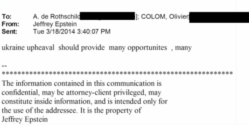 On March 18, 2014 — the day the Russian Federation formally annexed the Crimean Peninsula — Epstein dispatched a message to Ariana de Rothschild (née Langner, a German national) and Olivier Sarkozy, a French diplomat enmeshed in the World Economic Forum orbit. The communication possessed the obscene brevity of a man for whom geopolitical catastrophe is indistinguishable from a trading signal: ”The upheaval in Ukraine should offer many opportunities. Many.”