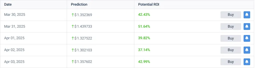 Pi Coin price predictions show the token potentially reaching $1.44 by March 31, 2025. Well, this would be a substantial 51.64% gain from the current value of $0.944683. Right now, the Pi Network price has unfortunately fallen about 31.09% over the past week. However, many analysts are expecting a recovery soon amid the ongoing cryptocurrency market fluctuations.