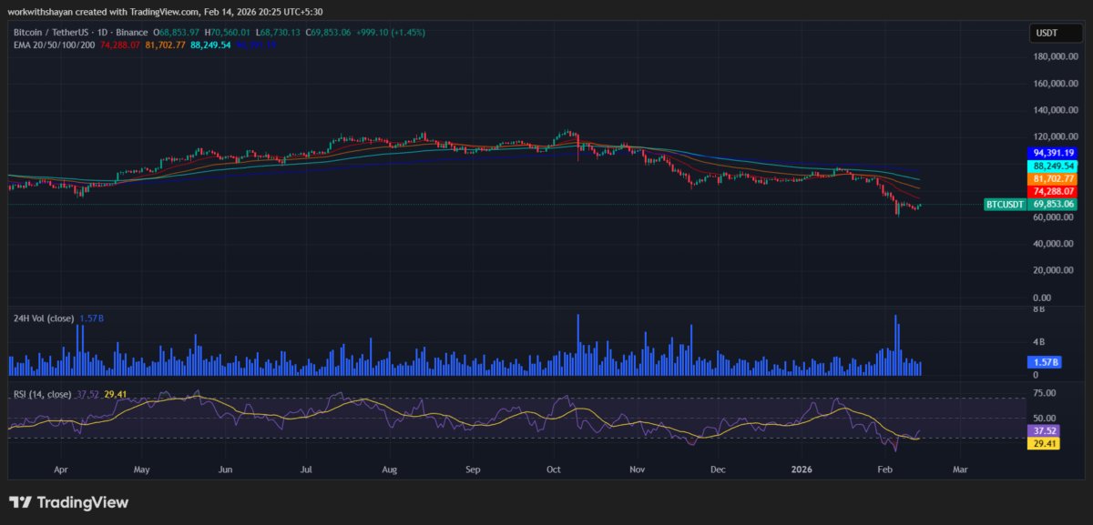 The BTC price analysis for 14 February confirms that BTC faces buying demand as BTC surges toward $70K. Currently, the Bitcoin price is aiming for a recovery above $72K.