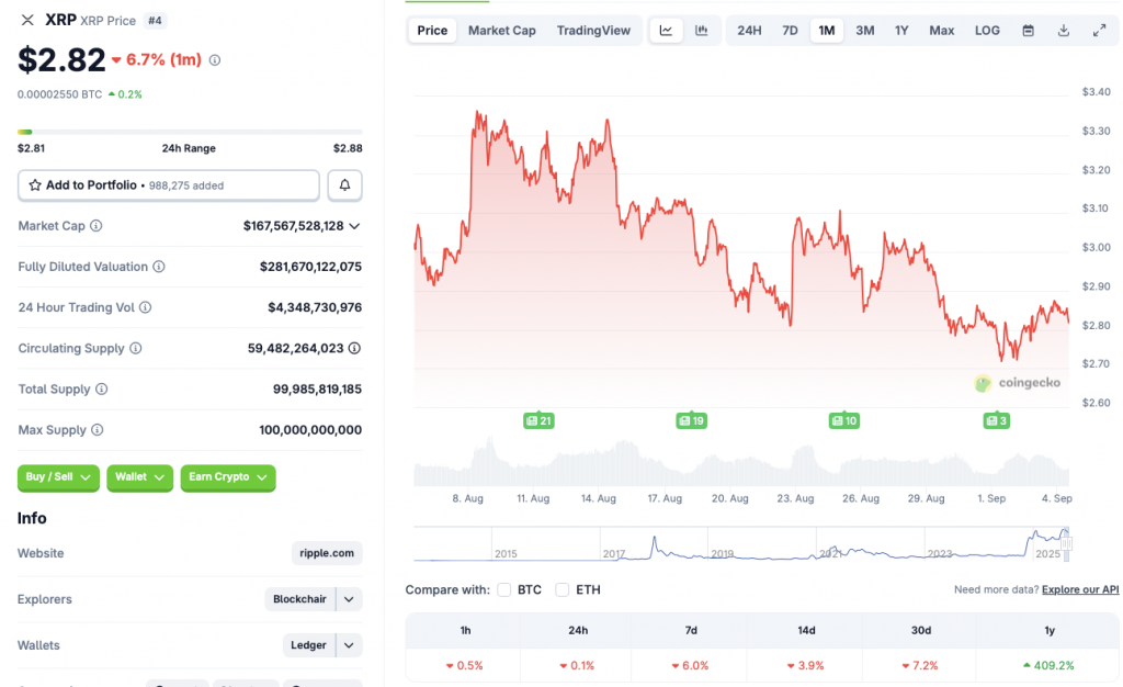 After years of delivering underwhelming returns, Ripple’s XRP token finally broke out of its shackles in 2025. The asset’s price has risen by 409.2% since September 2024, according to CoinGecko XRP data. XRP has come into the spotlight as a major contender to be the best-performing crypto of this year. Although XRP’s price has faced a steep correction over the last few days, the asset may be aiming to breach the $4 mark after a possible interest rate cut this month. Let’s discuss more.